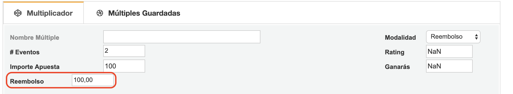 Importe Reembolso: o bônus que receberá se sua múltipla perde.